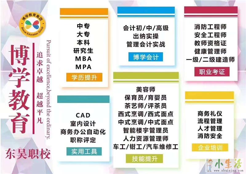 CAD机械、建筑、会计考证、管理会计师、注册会计师、会计做账实操、办公自动化PS、火热培训开班中,学历提升和各种技能培训项目政府扶持补贴学小生活网www.xbaixing.com。