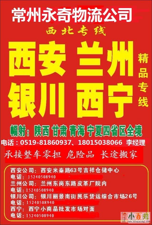 常州永奇物流有限公司是一家专业从事公路、大件运输、危险品运输等大型运输企业,有各类型的运输车发往,北京,天津,河北全境,东北等地来源www.xbaixing.com。“让顾客更省钱、更省时、更省力”是我们孜孜不倦的追求;“更 安全、更快捷、更方便”是我们对每一位客户真诚的承诺;准时发车,昼夜服务,微笑待客,是我们一贯的准则。我们的每一位员工,都始终视时间和质量为企业的生命;每一位员工,都牢记“效率至上”的法宝x b a i x i n g c o m。